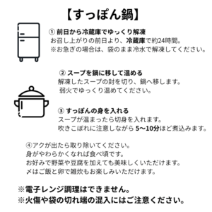 - ◆鍋:解凍した出汁を鍋に移し温めます。沸騰し始めたら切身を入れ、吹き溢しに注意しながら5分~10分煮込みます。